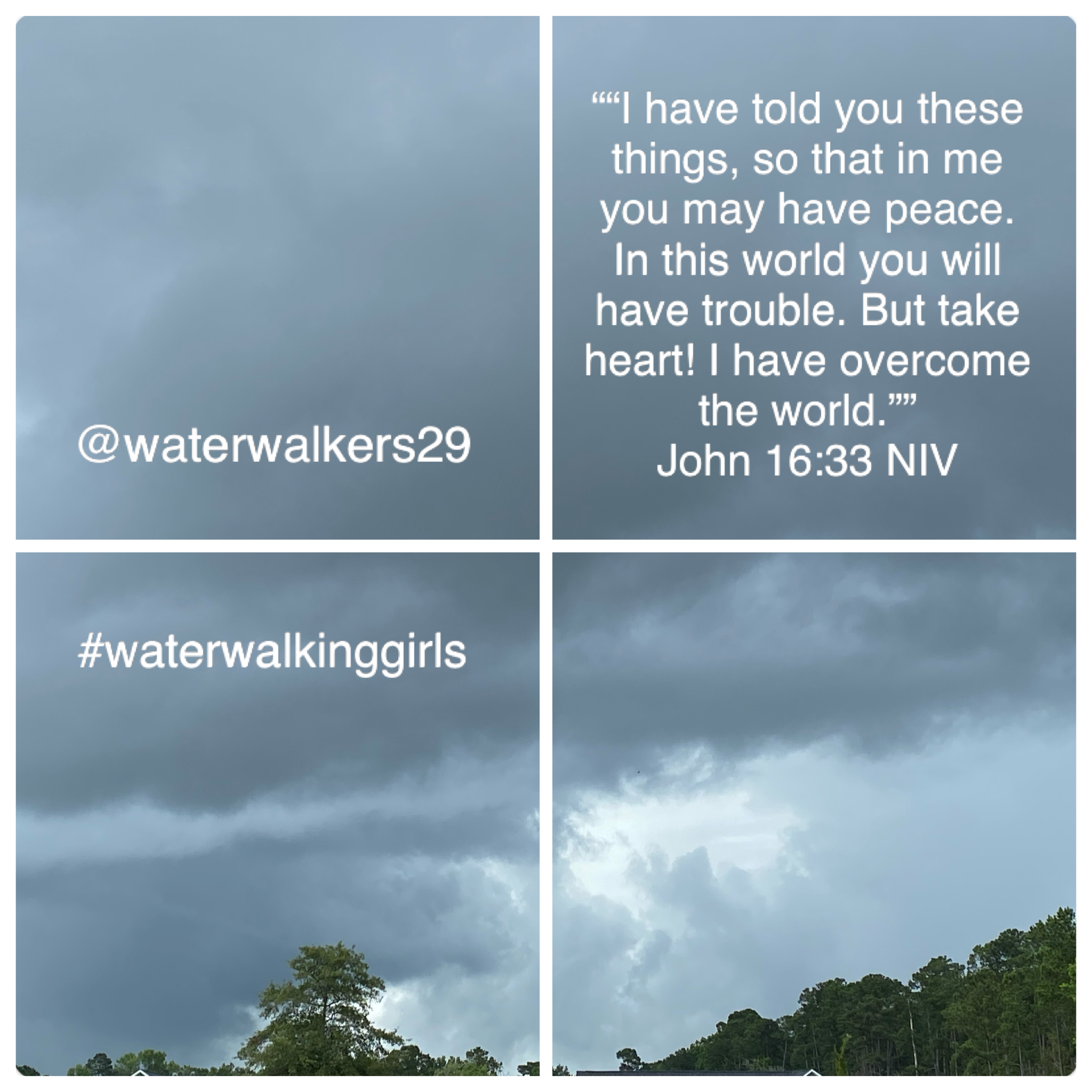 On this Water Walking Wednesday I encourage you to examine your responses to storms. Does life’s thunder and lightning scare you? Are you leaning on Christ for strength and courage? Are you stepping out in the rain and allowing God to guide your steps? As storms approach today, hold on to this Biblical promise.