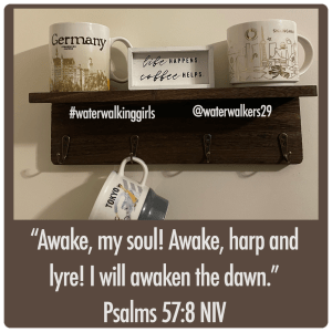 What wakes up your soul in the morning? For me it is coffee. The older I get, the stronger and darker I like it. These are some mugs my Dad collected for me during his travels. My sign “Life happens, coffee helps” was a gift from Deborah. whether it is coffee with devotion time, coffee with friends, or a late night cup of coffee with my husband, it is liquid soul therapy for me.