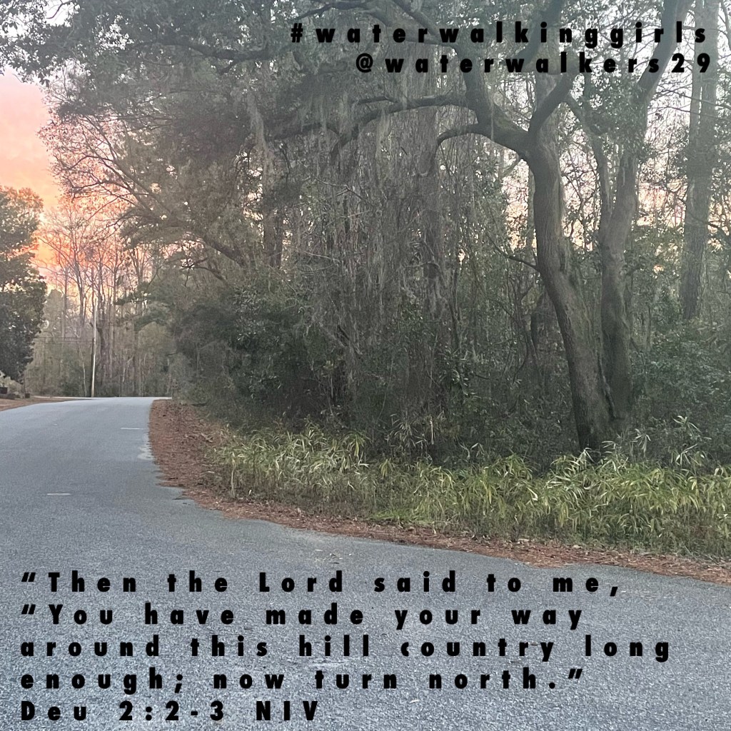 As I ran last night, I was blessed to watch the sun color the sky with amazing colors as it set. I am directionally challenged but if I stay near the ocean coast it makes it easier to know my North, East, West, and South. I remember as a child having to memorize, “Never Eat Sour Watermelons”. Although this picture isn’t turning North, it reminded me of Deuteronomy 2:1-3 NIV as I was finishing up mile four. God is talking to the Israelites about how they have wondered long enough;