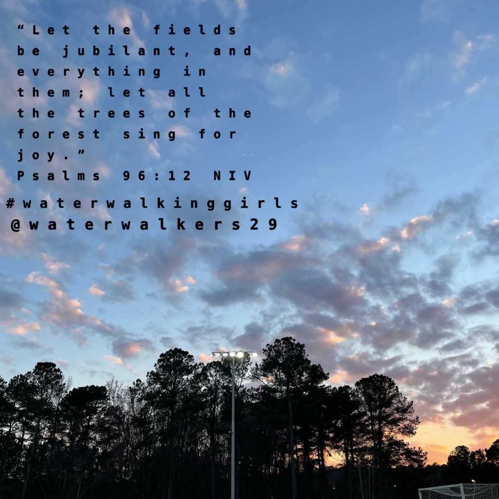 This past Tuesday our twins played their last first soccer game as High School Seniors. It was a joyful night for them as players and us as spectators. From the time they started playing at 4 years old, this verse has always come to mind; “Let the fields be jubilant, and everything in them; let all the trees of the forest sing for joy.” Psalm 96:12 NIV