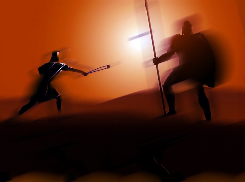 1 Samuel 17:8-11 NIV — Goliath stood and shouted to the ranks of Israel, “Why do you come out and line up for battle? Am I not a Philistine, and are you not the servants of Saul? Choose a man and have him come down to me. If he is able to fight and kill me, we will become your subjects; but if I overcome him and kill him, you will become our subjects and serve us.” Then the Philistine said, “This day I defy the armies of Israel! Give me a man and let us fight each other.” On hearing the Philistine’s words, Saul and all the Israelites were dismayed and terrified.