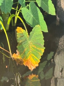 Deborah, Ray, and I live in South Carolina. Many of our family and friends like to celebrate on the river. The elephant ear plant thrives near standing water. Notice that they are heart shaped and they dip down to the water. Most are a vibrant green and cascade along the riverbanks. Notice that this particular leaf has started to turn yellow. Like this plant, we are all imperfect people in need of God’s love.
